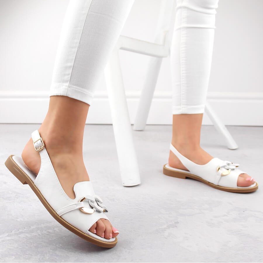 Sandalele se disting prin croiala clasică și culoarea albă subtilă, care se potrivește perfect celor mai noi tendințe. Realizate din piele ecologica, insertiile exterioare si interioare sunt din piele naturala, asigurand confort la purtare si durabilitate. Brantul moale face ca fiecare pas sa fie o placere pura, iar un avantaj in plus este folosirea unei catarame care iti permite sa pui si sa dai jos sandalele cu usurinta.