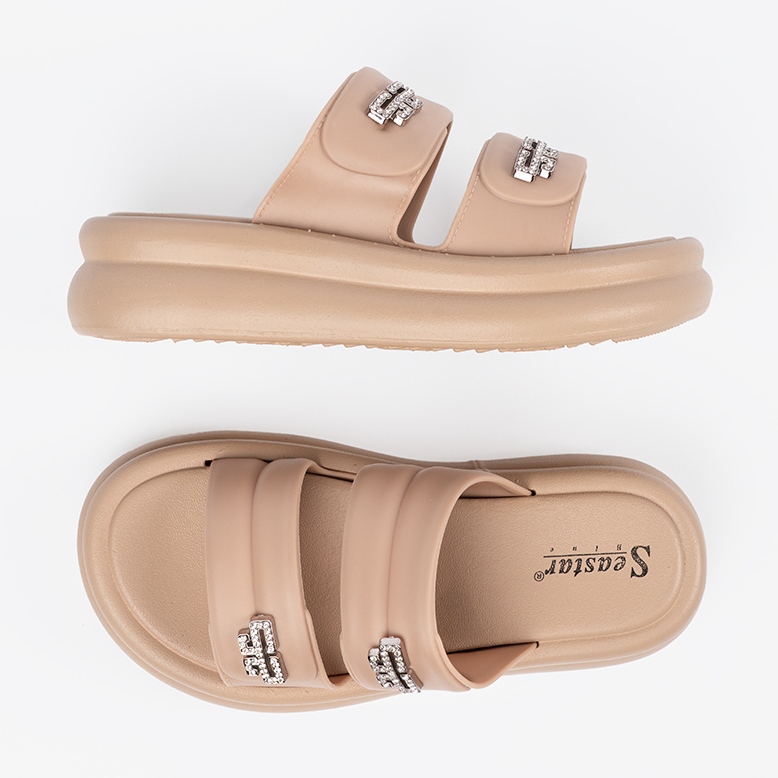 Vă prezentăm flip -flop -uri pentru femei bej pe platforma de la renumitul producător Seaster, care se încadrează perfect în stilul la modă și casual. Aceste flip -flops elegante combină designul clasic cu accentele moderne, datorită cărora sunt un complement perfect pentru fiecare stilizare de vară.