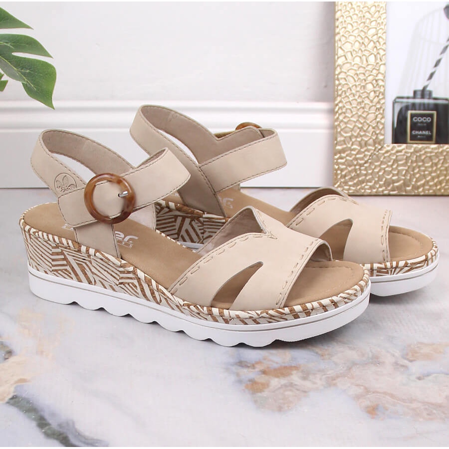 Detalii: Sandale de damă confortabile cu pană bej Rieker 67173-60