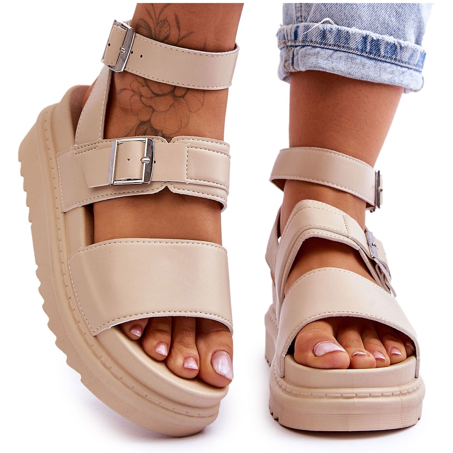 Sandalele sunt caracterizate de o platformă stabilă, masivă, cu o înălțime de 5,5 cm, făcându-le perfecte pentru femeile care preferă tocuri confortabile care adaugă câțiva centimetri înălțime. Platforma, la fel ca întreaga încălțăminte, este în culori estetice bej, ceea ce le face universale - pot fi asortate cu ușurință la majoritatea ținutelor din garderoba ta.
