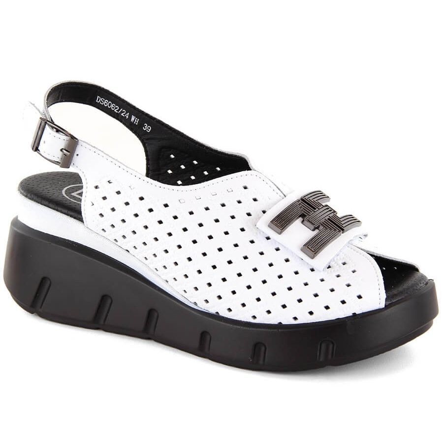 Detalii: Sandale de damă cu pană din piele albă ajurata Filippo DS6062
