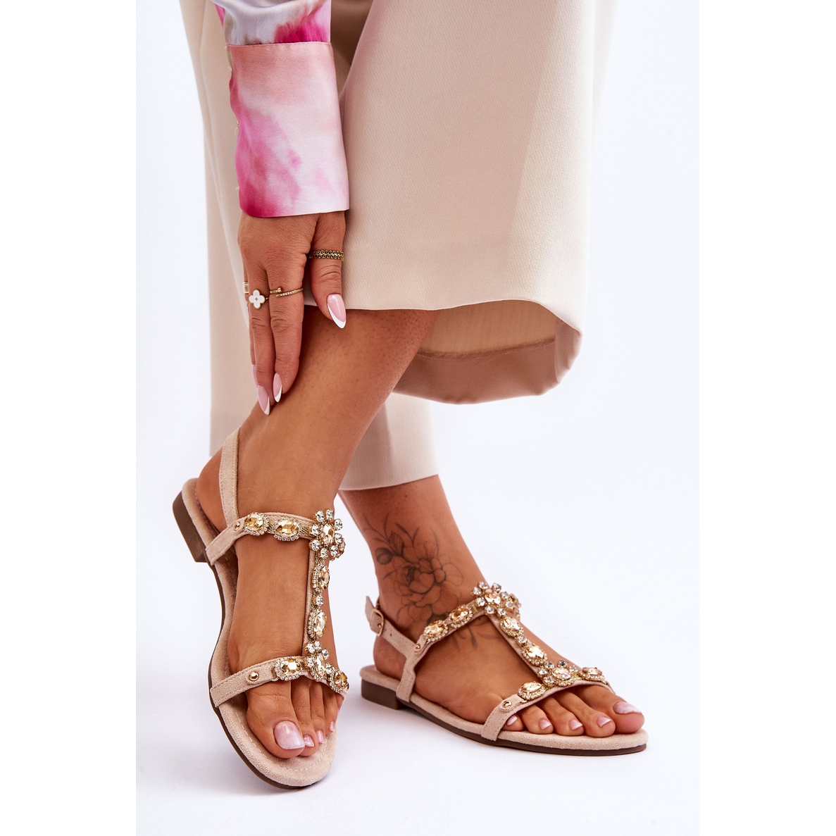 FI1 FI1 Sandale De Damă De Căprioară Cu Pietre Bej Calabrio
