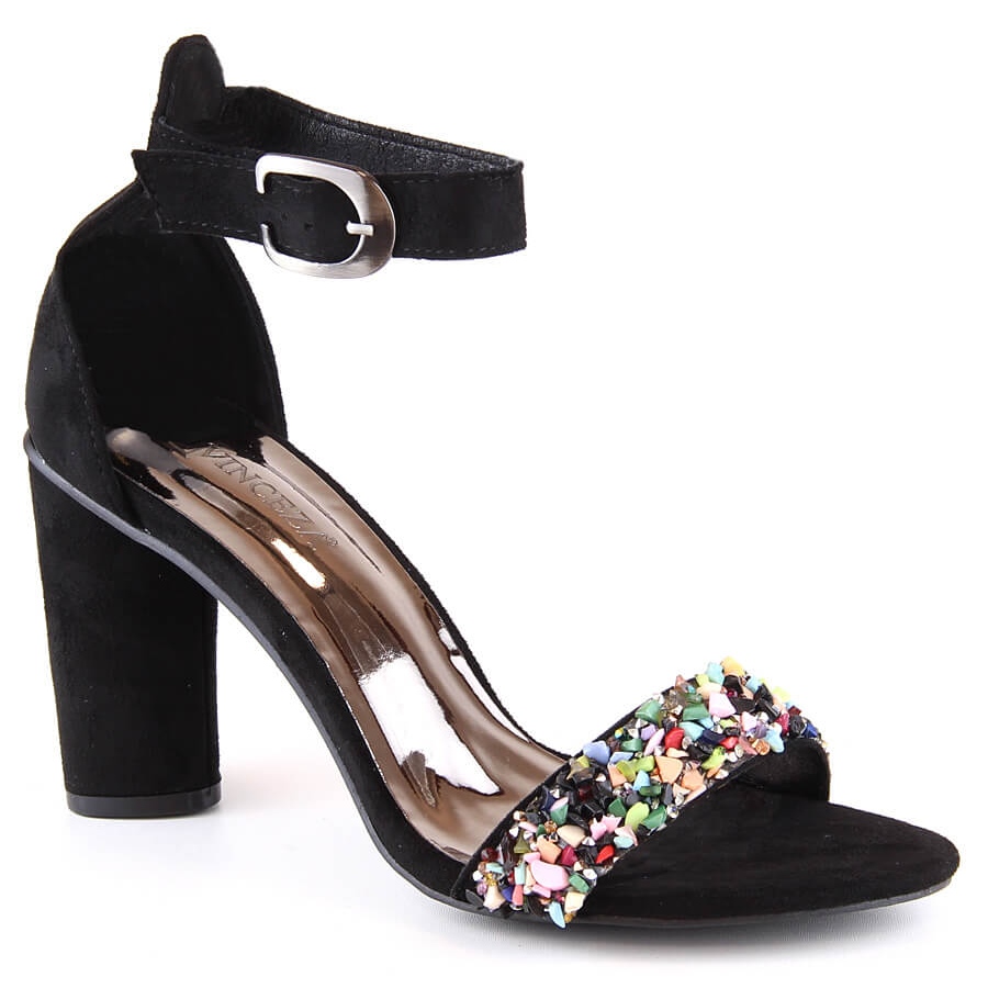 Vinceza Sandale de damă din piele intoarsa pe un post cu margele negre Vinceza 17259 negru