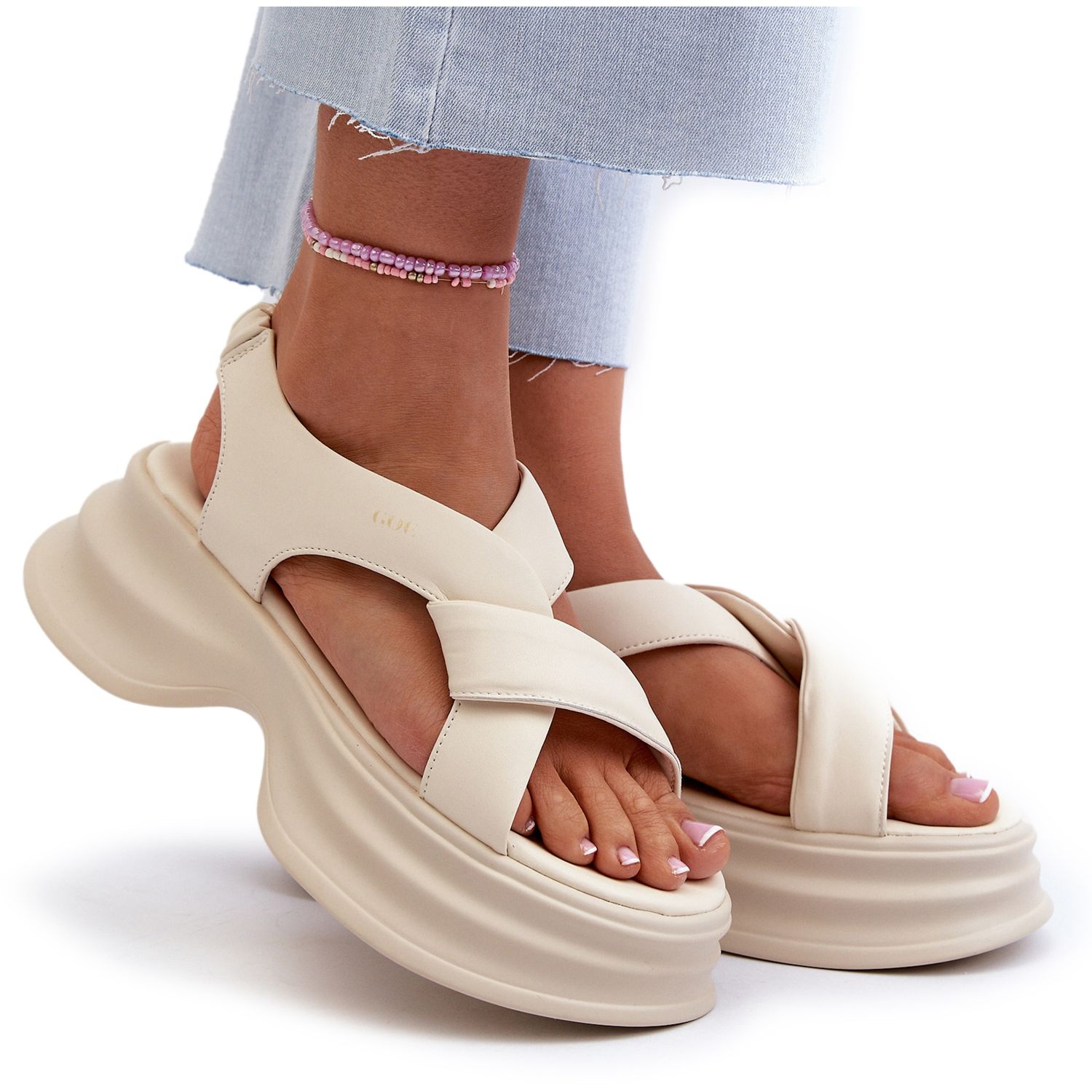 Detalii: Sandale de damă din piele pe talpă groasă, bej deschis GOE NN2N4105