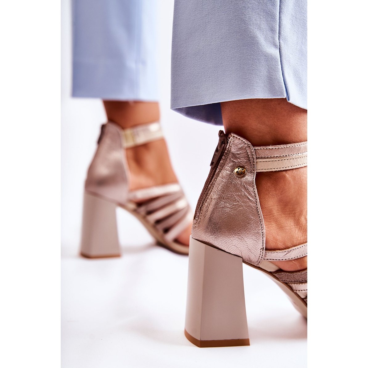 Maciejka Sandale de damă din piele pe un bar masiv Maciejka 05514-04 bej-auriu