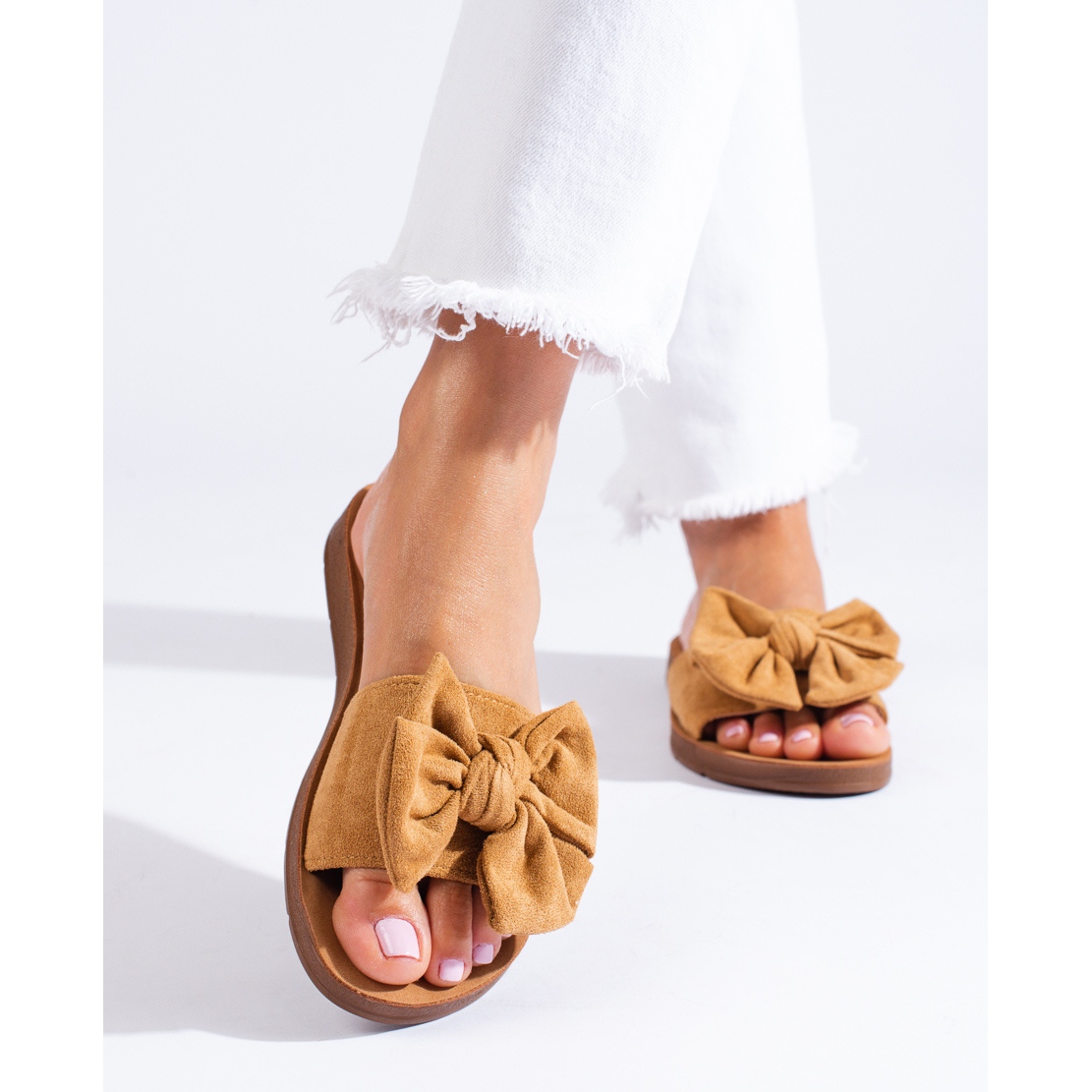 Un plus elegant sub formă de fundă le conferă un caracter unic, făcându-le o completare perfectă pentru rochiile de vară, pantaloni scurți sau blugi. De culoare maro, se asorteaza perfect cu multe alte culori, ceea ce le face sa se potriveasca cu diverse tinute.