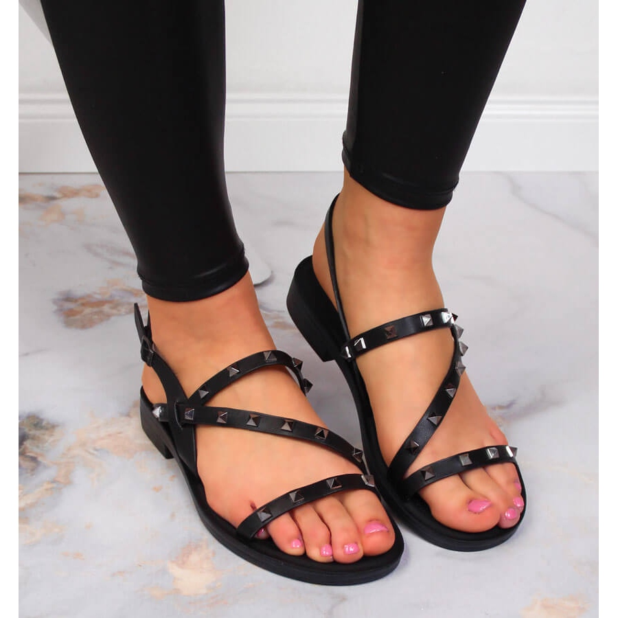 Detalii: Sandale de dama negre cu capse Potocki negru
