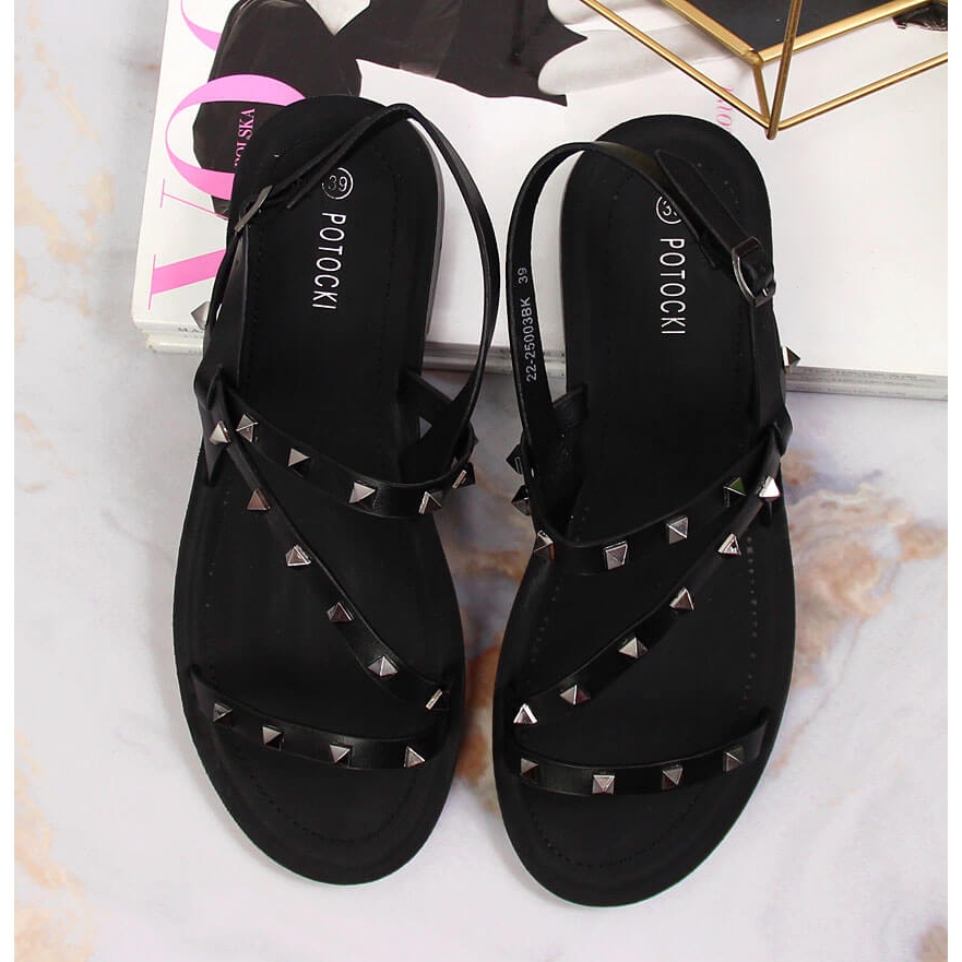 POTOCKI Sandale de dama negre cu capse Potocki negru