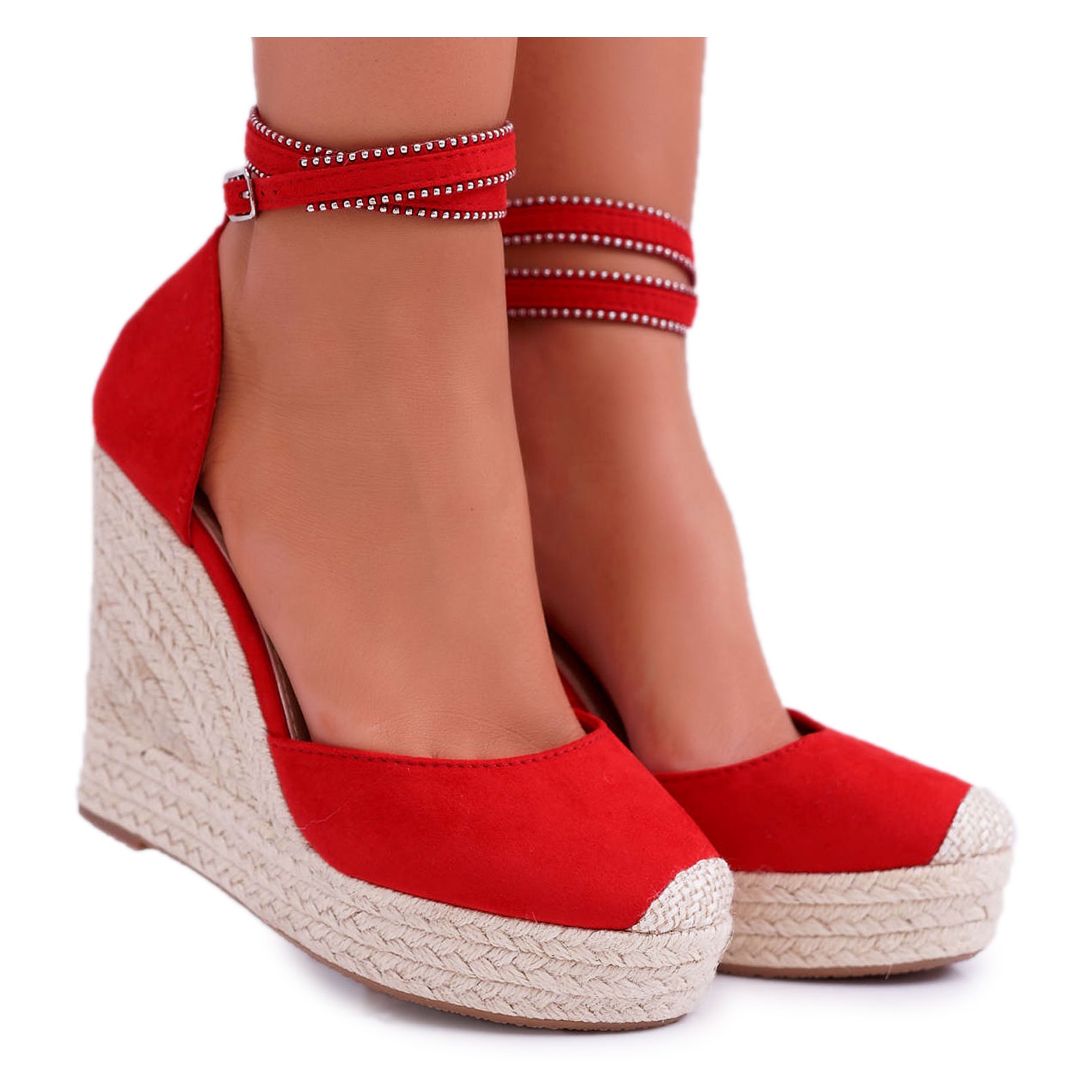 Detalii: FB2 Sandale de damă pe o pană de lenjerie roșie Canterola roșu