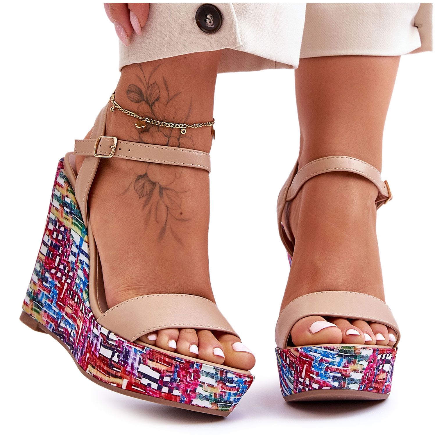 Detalii: Sandale de damă pe o pană Malibu bej colorată