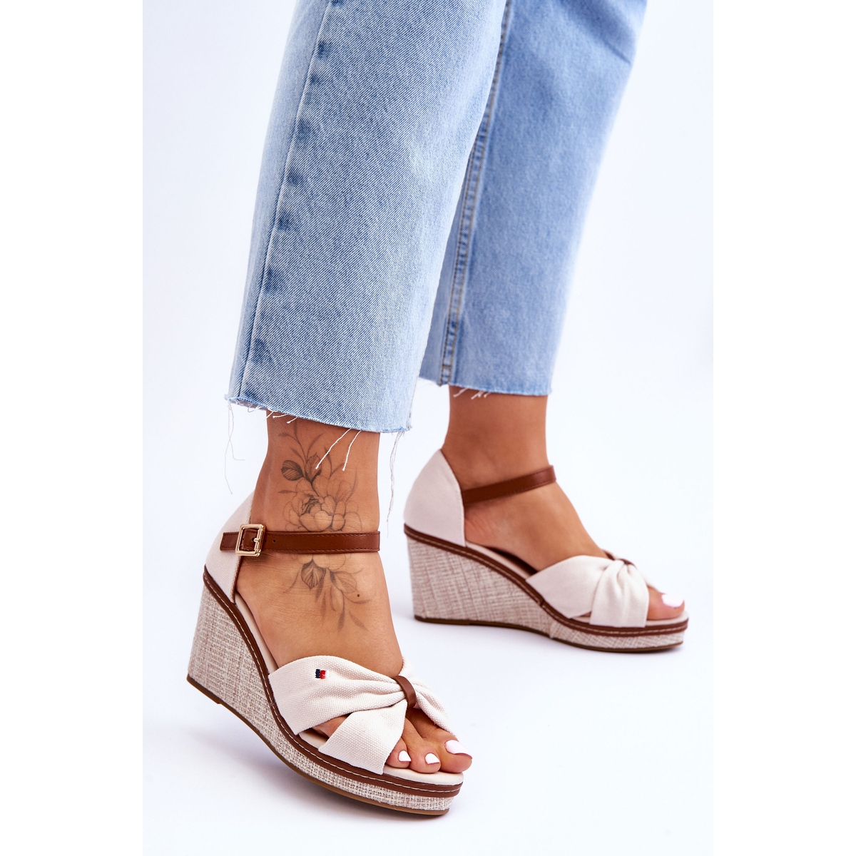 Sandale PS1 pentru femei pe o pană împletită Bej Judith - Sinonim cu eleganța verii