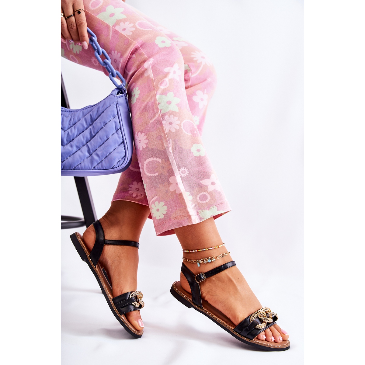 S.Barski S.Barski Sandale De Damă Pe Toc Plat Cu Un Lant Negru Minevra