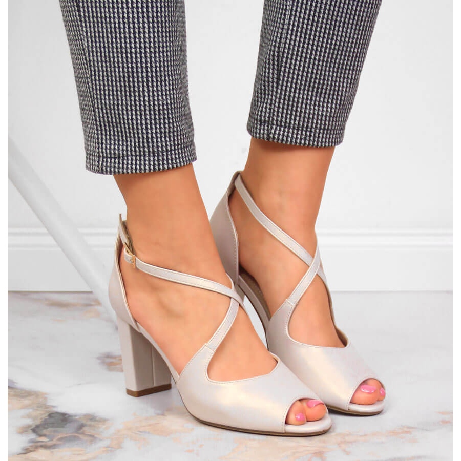 Sergio Leone Sandale de dama pe un post Sergio Leone bej sidefat