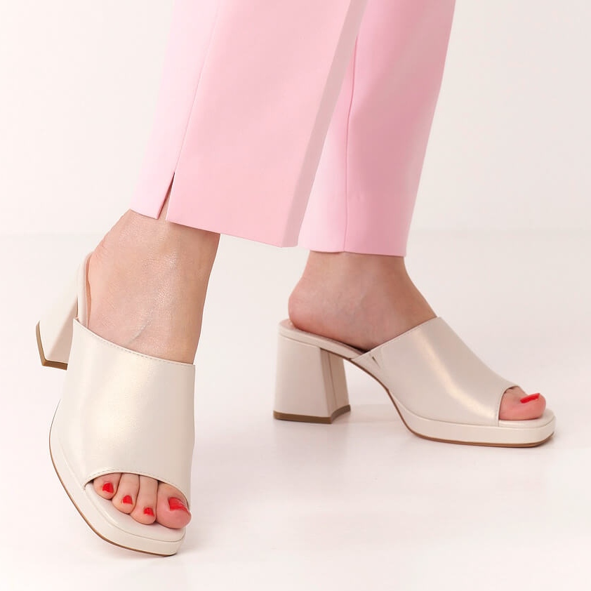 Atunci cand cauti pantofii perfecti pentru zilele de primavara si vara, merita sa fii atent la noile produse oferite de brandul Sergio Leone. Oferta lor extinsă include șlapi de damă cu toc înalt, model KL322, care combină eleganța și confortul, răspunzând celor mai noi tendințe în modă. În timp ce vă bucurați de lunile calde, nimic nu va adăuga farmec stilurilor noastre precum încălțămintea selectată corespunzător. Flip-flops bej prezentați, decorati cu o strălucire subtilă de perlat, se potrivesc elegant atât cu ținutele de zi cu zi, cât și mai formale.