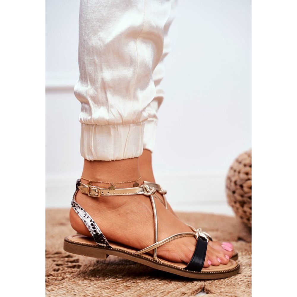 Detalii: S.Barski Sandale de damă plate negre și aurii Barski Samim negru galben
