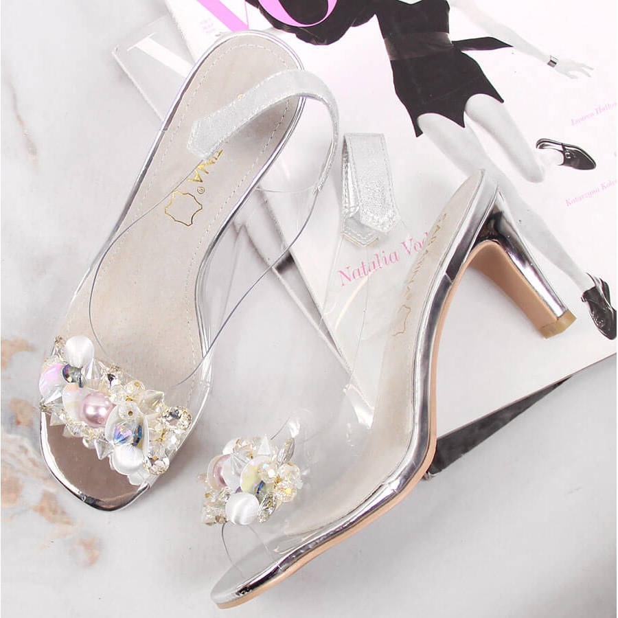 Detalii: Sandale de dama transparente cu pietre argintii Sabatina 1014-5