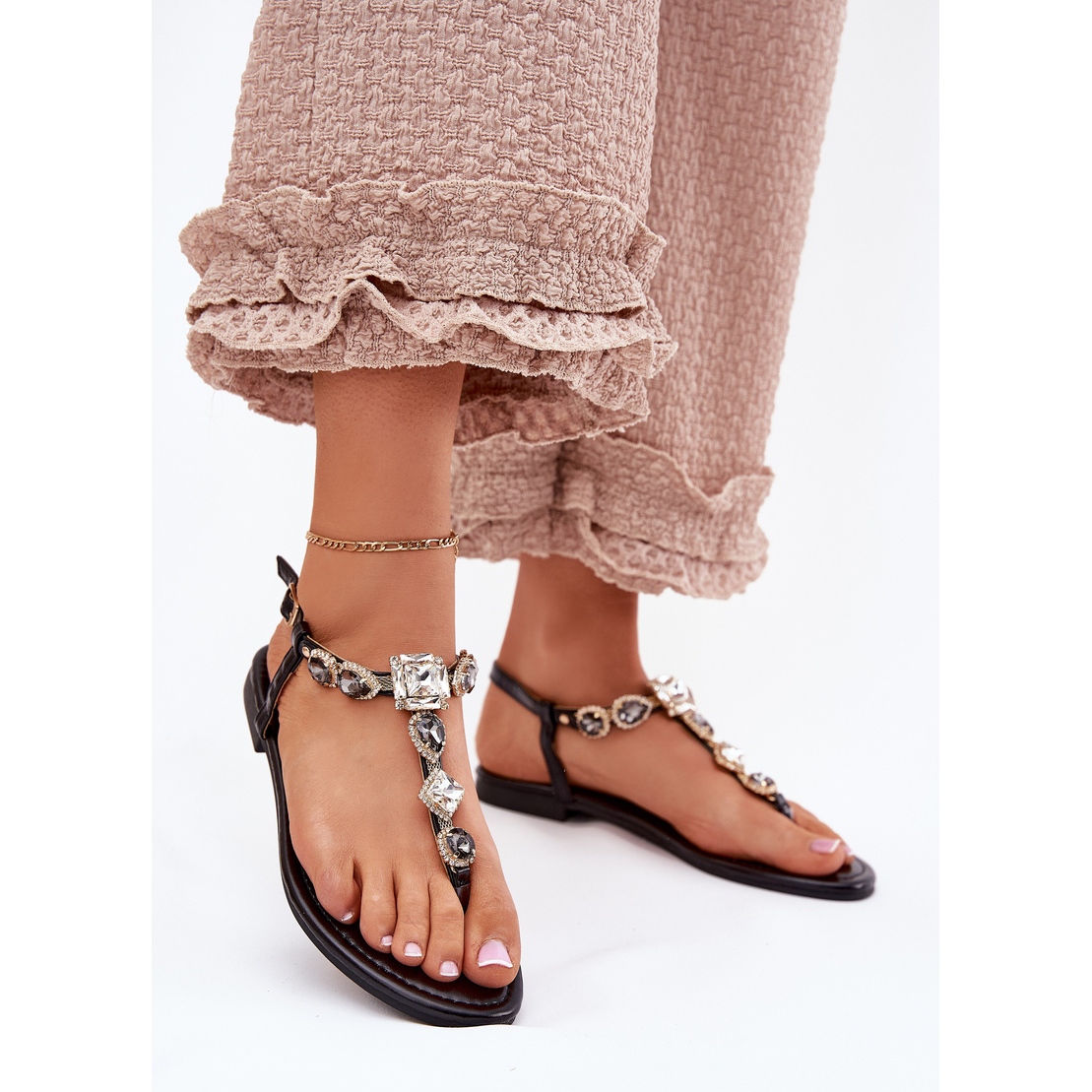 Descoperiți sandale unice de femei cu lac plat cu cristale într -o culoare neagră elegantă. Aceste sandale elegante, confecționate din piele Eco, sunt o alegere excelentă pentru zilele calde de vară. Datorită călcâiului plat cu o înălțime de 1,5 cm, vă puteți bucura de un confort maxim pe tot parcursul zilei, indiferent de ocazie.