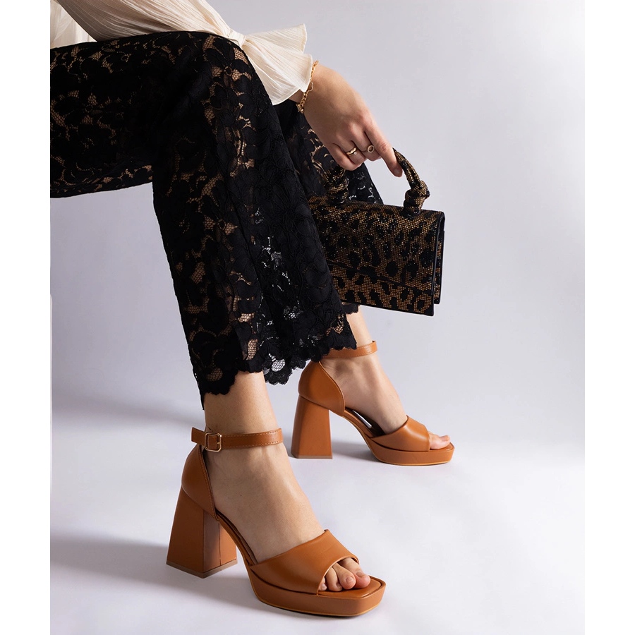 Detalii: Sandale de femei maro pe un călcâi masiv