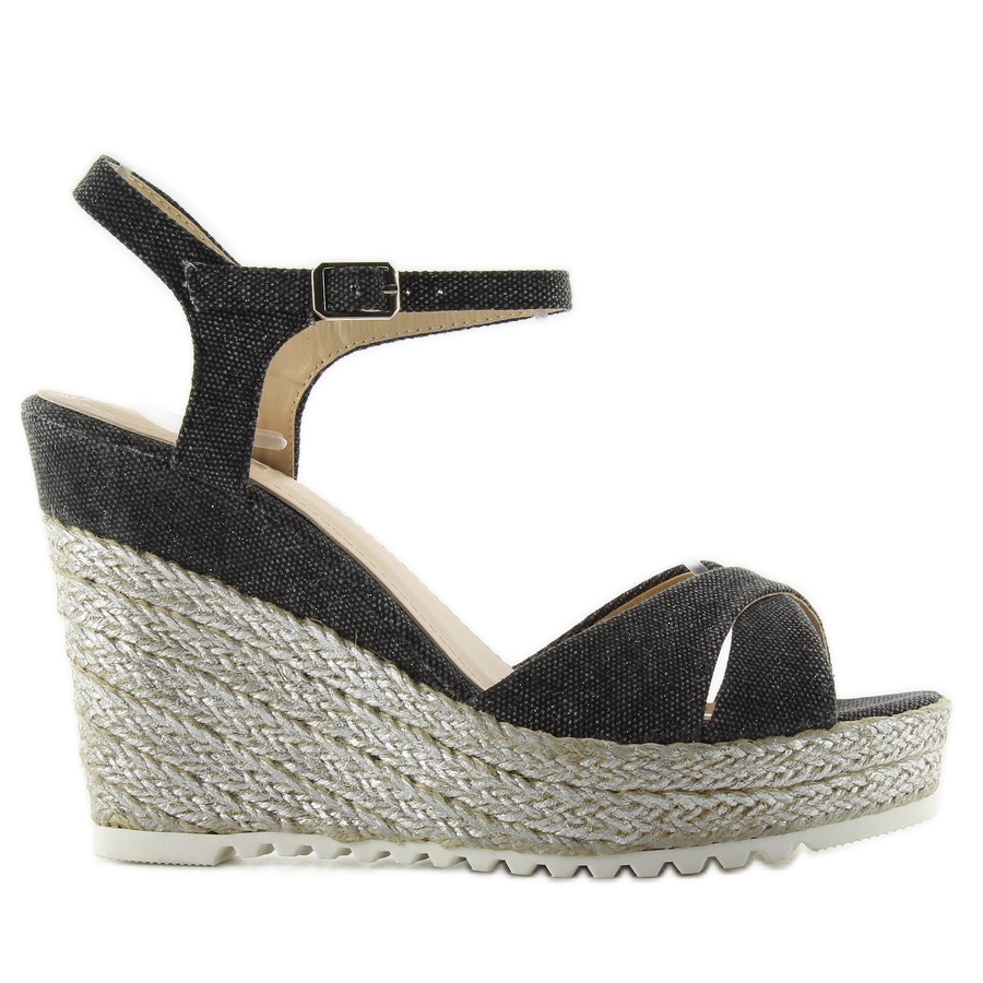 Detalii: Sandale de pânză pe pană TS-8 neagră negru