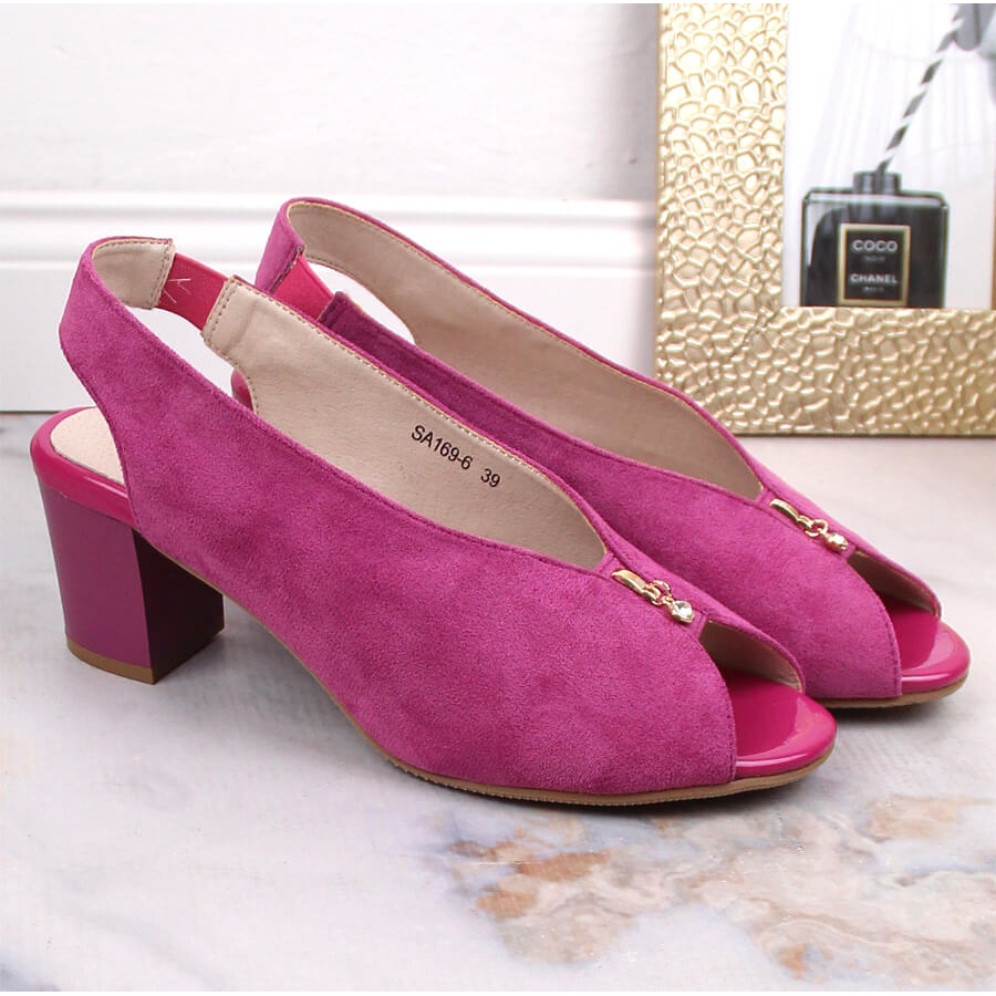 Detalii: M. DASZYŃSKI Sandale de piele intoarsa pe un stalp cu slip-on fucsia M.Daszyński SA169-6 roz