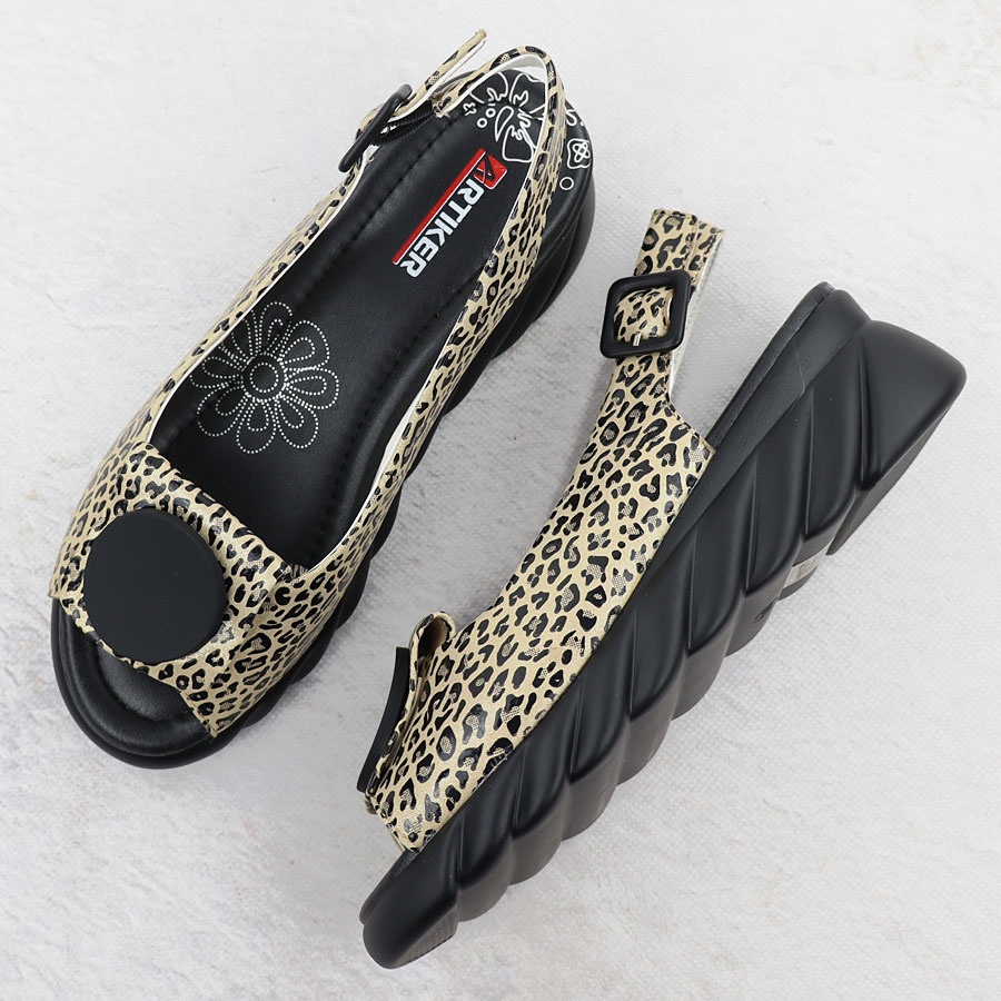 Detalii: ARTIKER Sandale de piele pentru femei pe pană -în leopard print articer 56C2186 bej