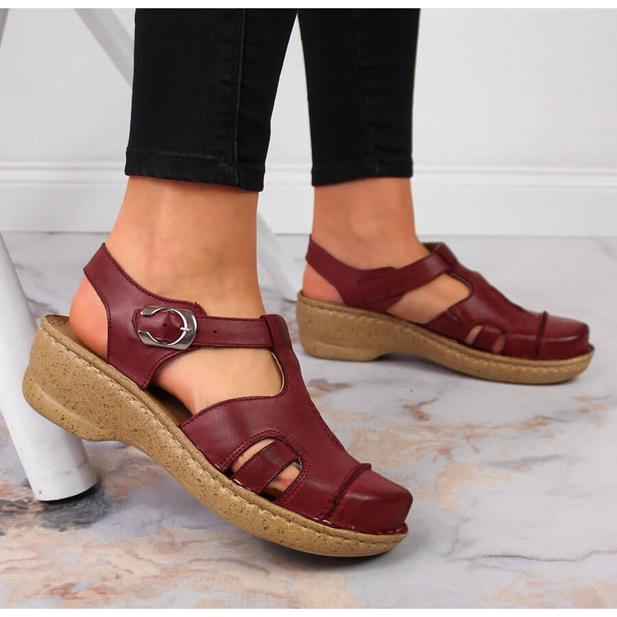 Sandalele închise din piele burgundă Łukbut 656 sunt alegerea perfectă pentru femeile care apreciază confortul și eleganța. Realizate în întregime din piele naturală de înaltă calitate, aceste sandale frumoase îmbină designul la modă cu confortul oferit de linia TOTAL COMFORT. Datorită modelării atente și amortizarii adecvate, acest model este o soluție perfectă pentru zilele de vară.