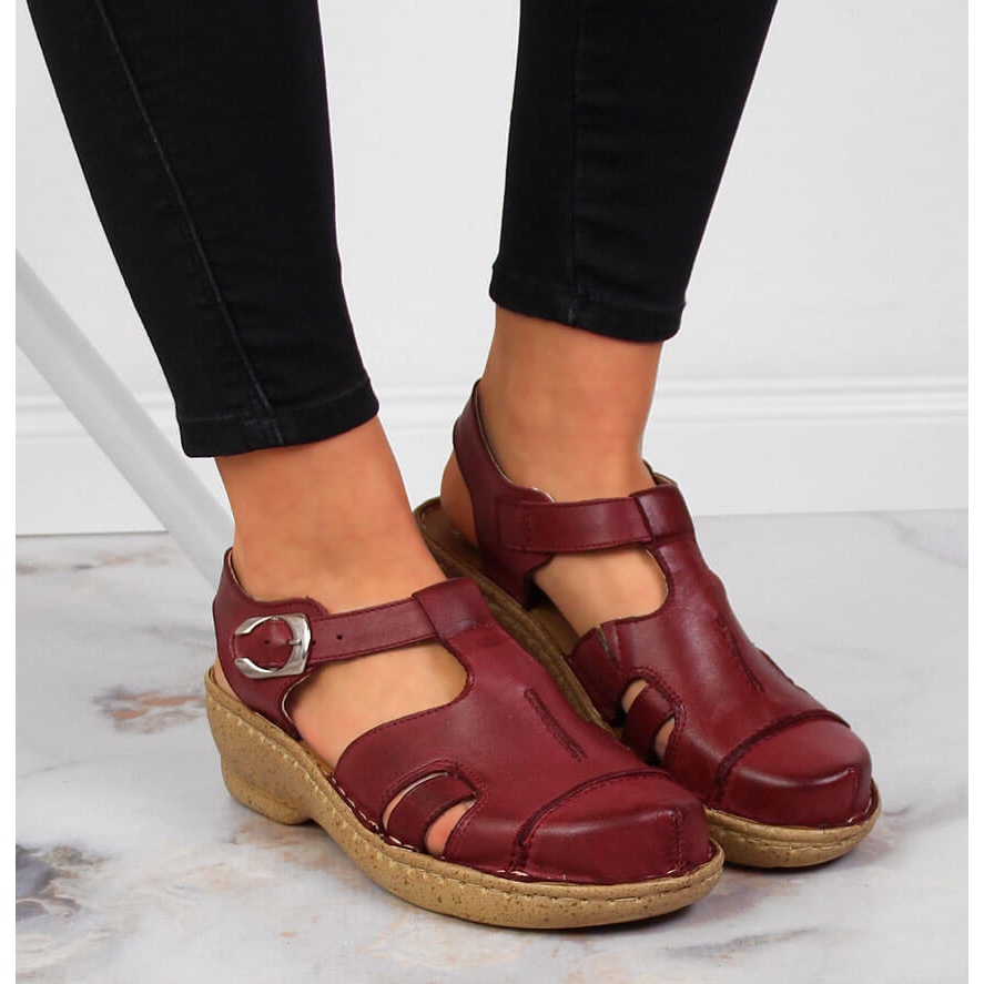 Detalii: Sandale din piele construite în visiniu Łukbut 656 roșu