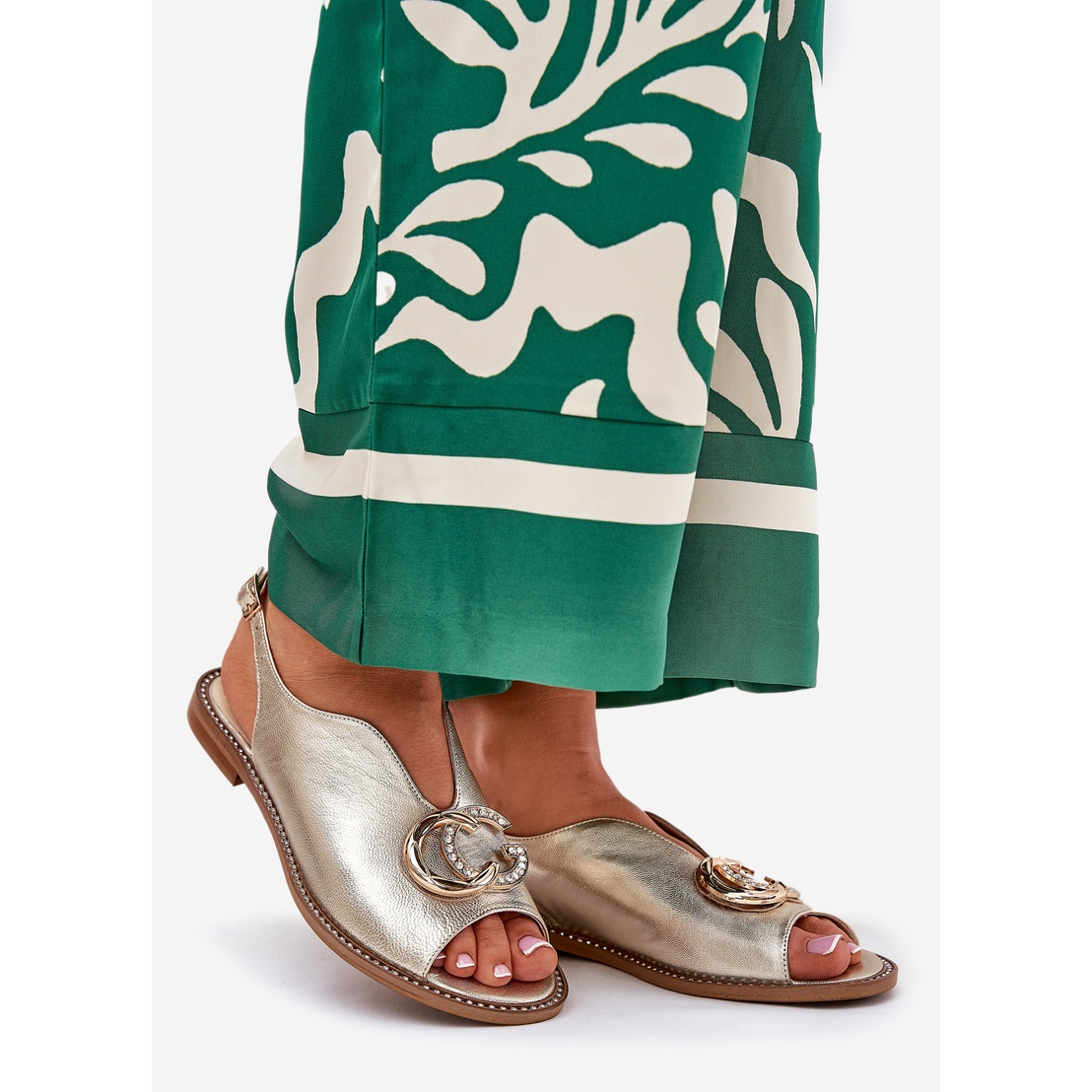 Detalii: Sandale din piele cu lac plat cu decorarea Laura Messi 2865 Zlotys de aur