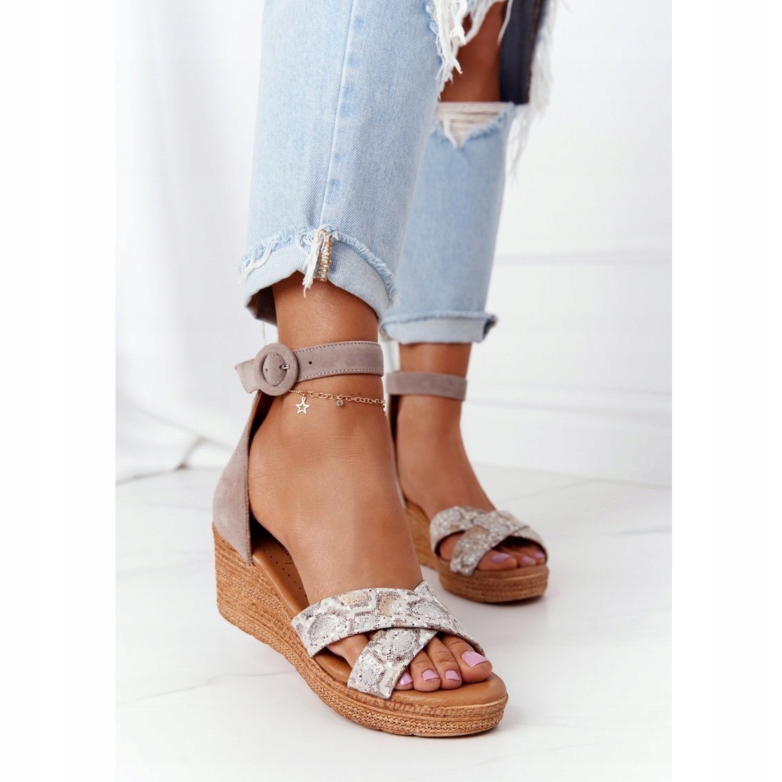 Descoperiți stilul și confortul unic cu sandalele cu pană din piele intoarsa Maciejka 04565-04 într-o culoare elegantă bej și auriu. Aceste sandale frumoase, create de renumitul brand polonez Maciejka, îmbină designul clasic cu detaliile moderne, potrivindu-se perfect cu ultimele tendințe de modă.