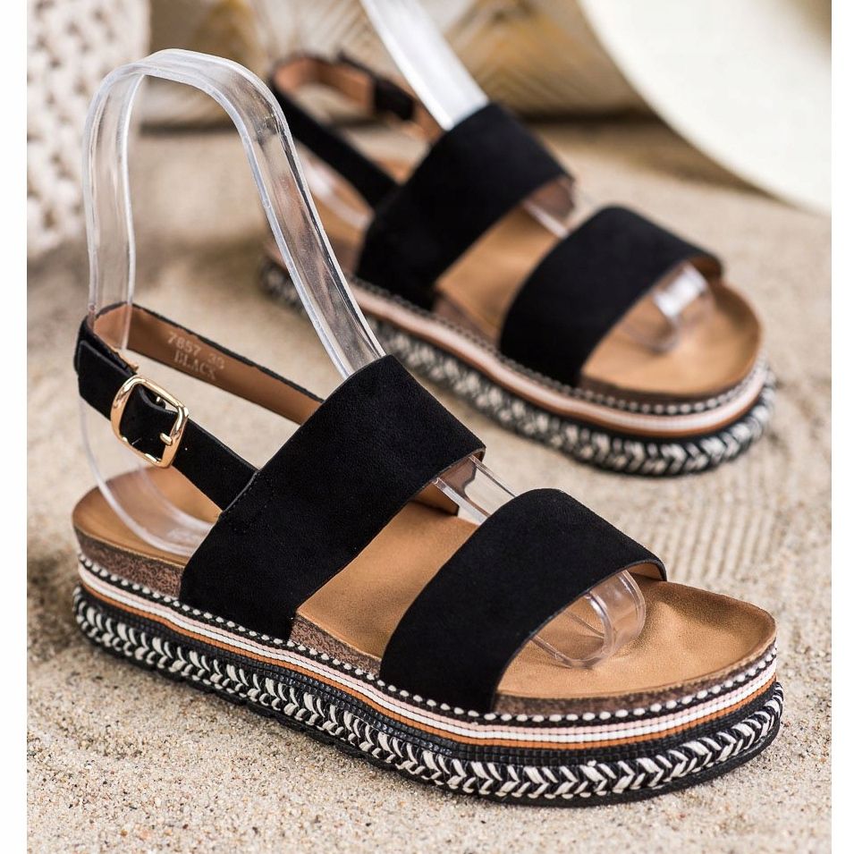 Ideal Shoes Ideal Shoes Sandale din piele de căprioară pe platformă negru