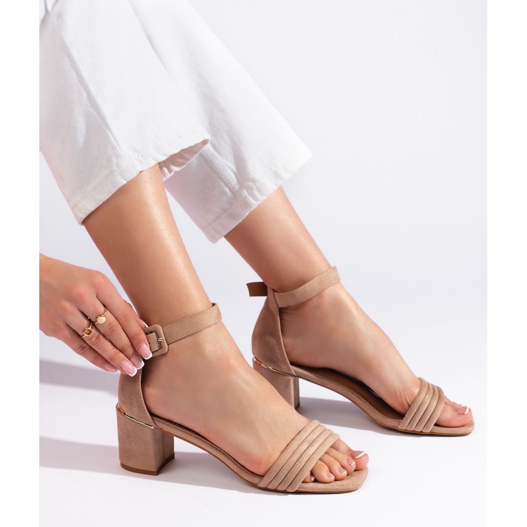 Detalii: Sandale din piele intoarsa bej cu toc inalt maro