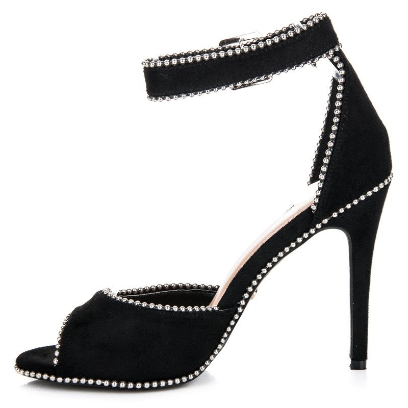 Sandalele cu toc inalt din piele intoarsa neagra de la brandul Seastar sunt alegerea perfecta pentru femeile care doresc sa adauge un pic de eleganta si chic stilului lor de vara. Acești pantofi unici vor atrage cu siguranță atenția datorită perlelor argintii delicate, strălucitoare, care decorează subtil modelul.