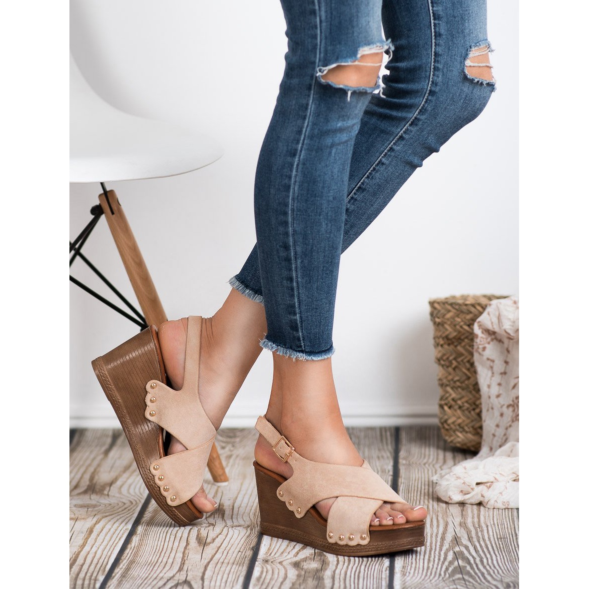 Sandalele sunt confectionate din piele intoarsa ecologica de calitate superioara, ceea ce asigura durabilitate si un aspect elegant. Principalul lor avantaj este pană confortabilă de 8 cm înălțime, decorată cu paie naturală, care le conferă un caracter unic. Datorită închiderii cu cataramă, le poți ajusta cu ușurință la picior, iar călcâiul deschis se va asigura că picioarele tale sunt bine ventilate.