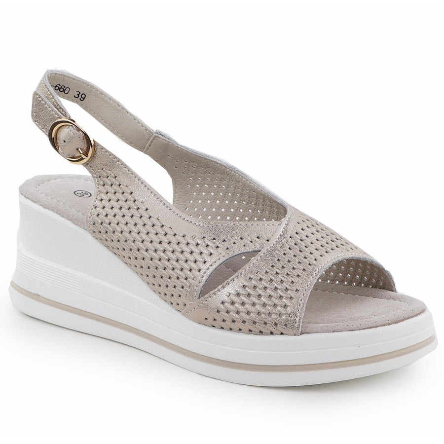 Detalii: S.Barski Sandale din piele pentru femei Openwork pe Złote S. Barski LR51-660 Panouri de aur