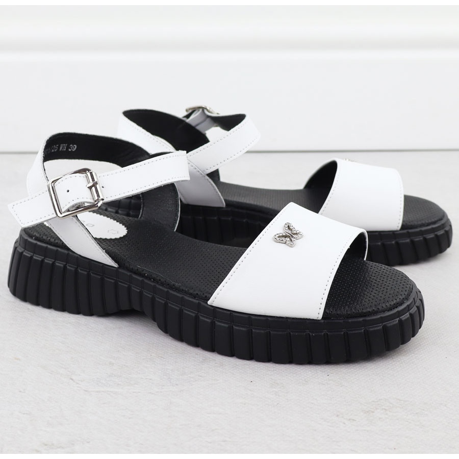 Detalii: Sandale din piele pentru femei pe o talpă groasă cu un fluture alb Filippo DS6811