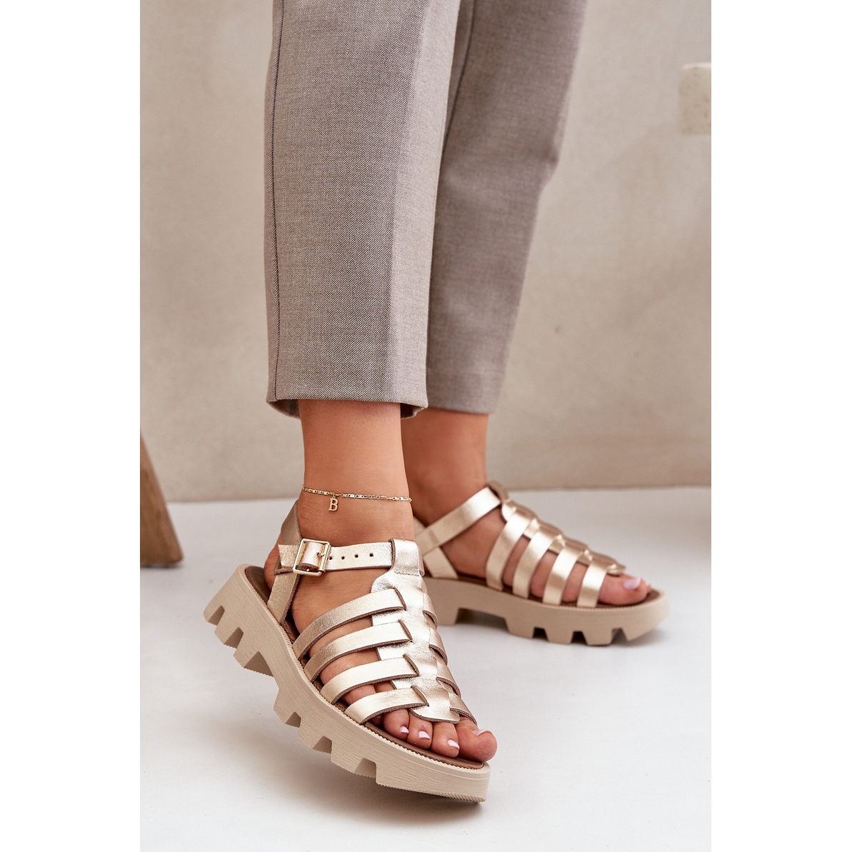 Detalii: Zazoo Sandale din piele pentru femei Zlotys Zlotys Zlotys de aur