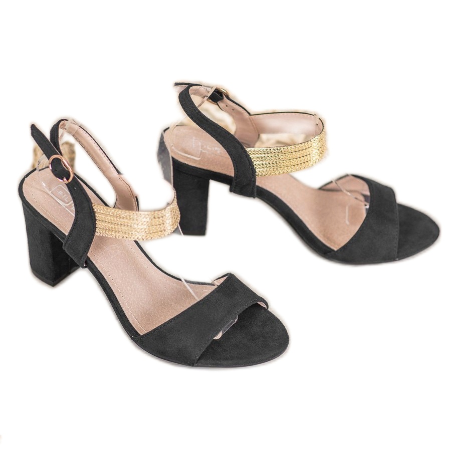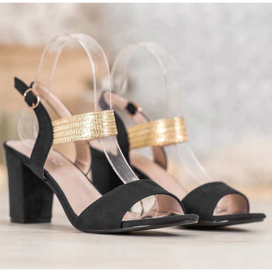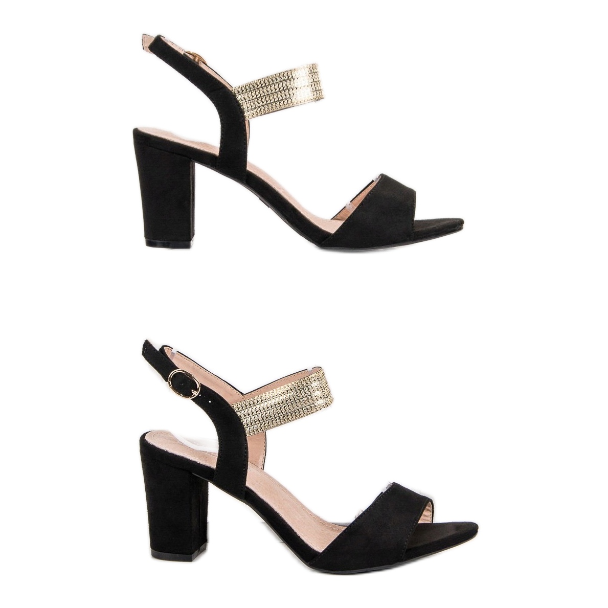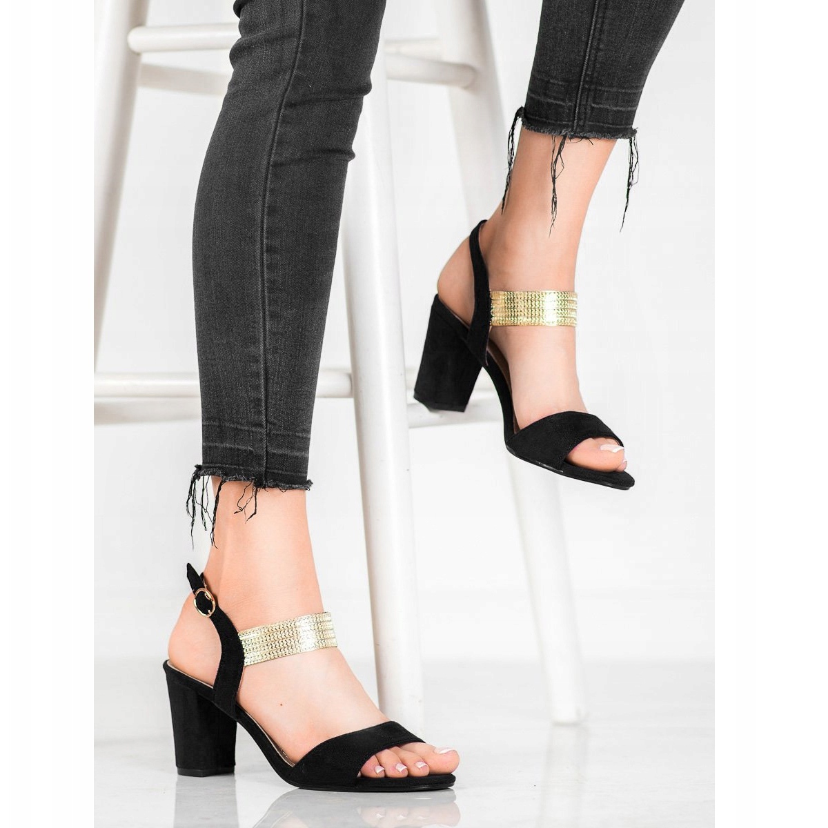 Sandalele negre sunt confectionate din piele intoarsa ecologica, care nu numai ca subliniaza aspectul lor stilat, dar se incadreaza si in tendintele modei sustenabile. Brantul natural previne alunecarea piciorului, ceea ce sporeste confortul la purtare. Un avantaj suplimentar sunt strasurile elegante si strasurile care fac incaltamintea cocheta si unica.