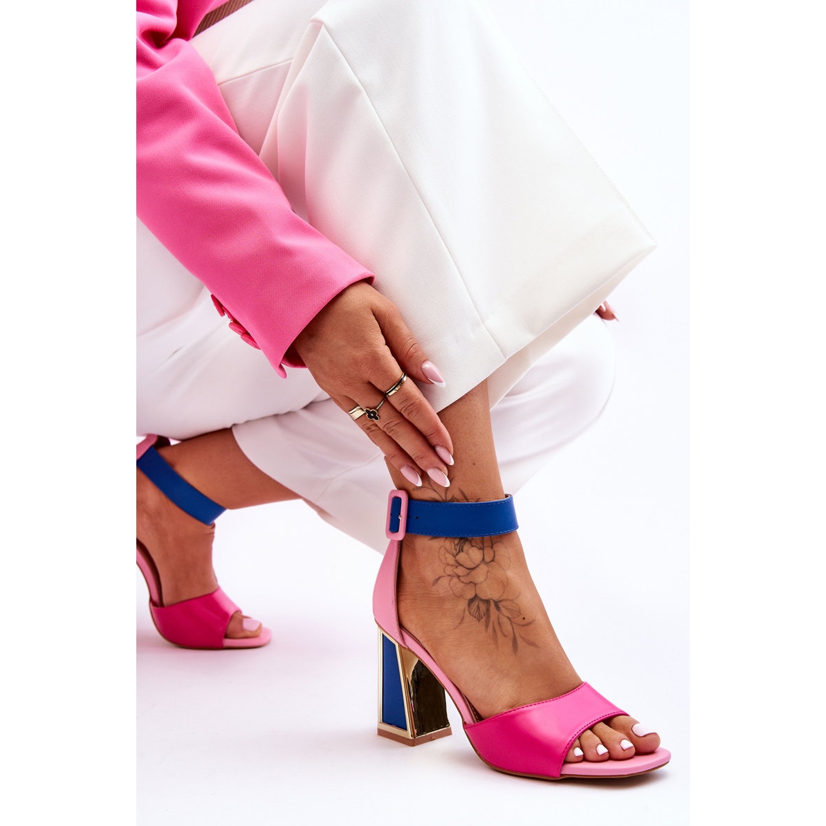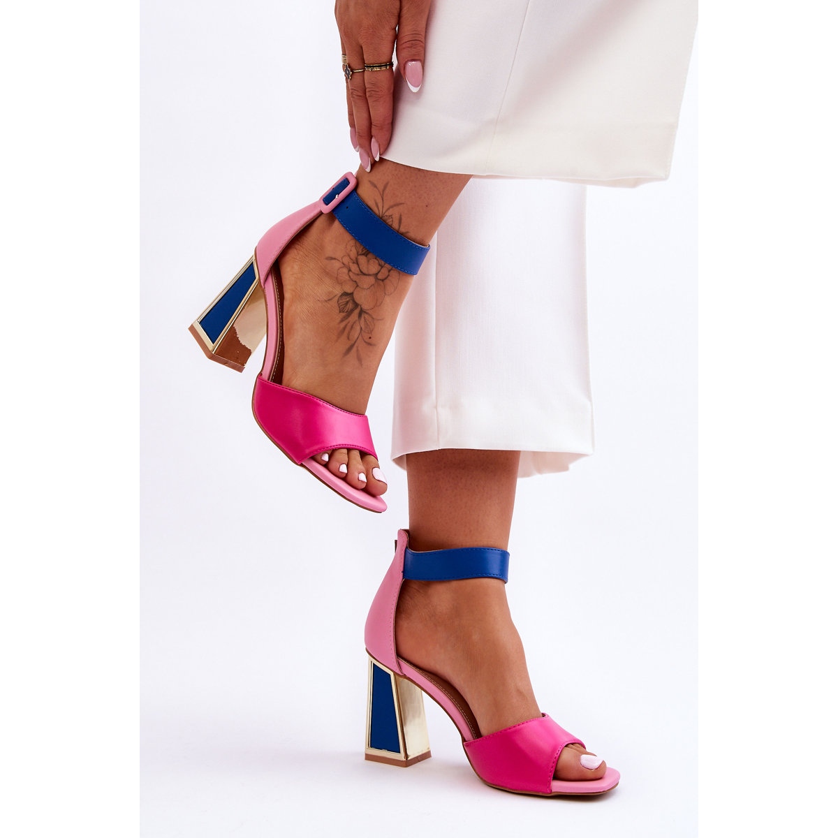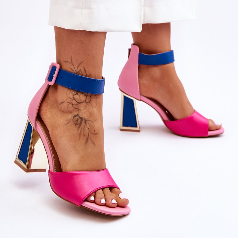 Detalii: Sandale Elegante Toc Inalt Roz Si Albastru Sorel
