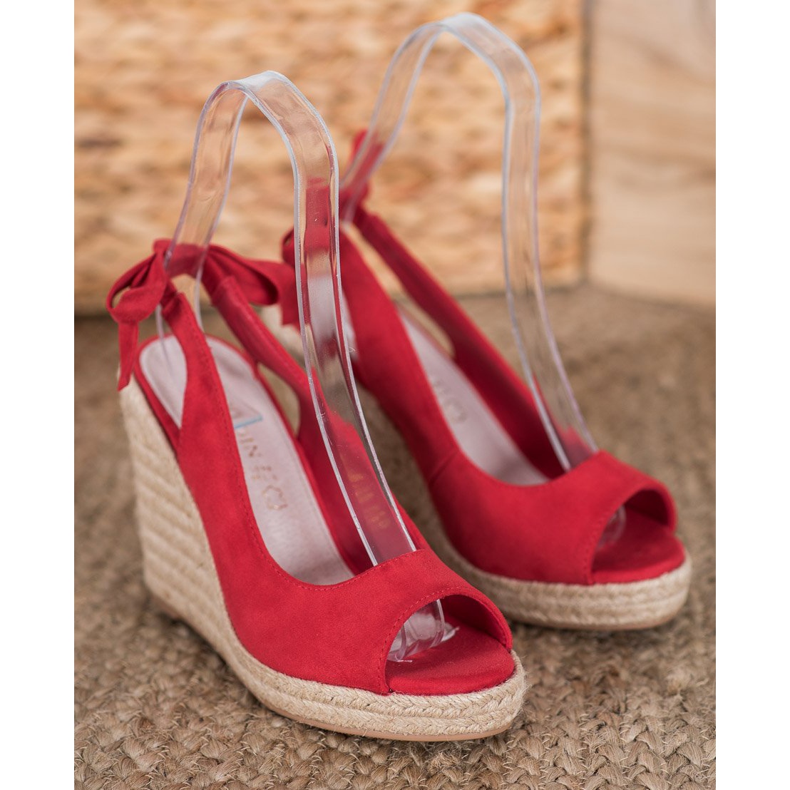 Datorită panei înalte de 11 cm, espadrilele alungesc optic picioarele și adaugă lejeritate siluetei. Talpa din material sintetic, într-o nuanță de bej, se potrivește perfect cu culoarea roșie a căptușei, creând un întreg armonios. Acest model se caracterizează printr-o croială clasică de espadrile care nu se demodează niciodată.