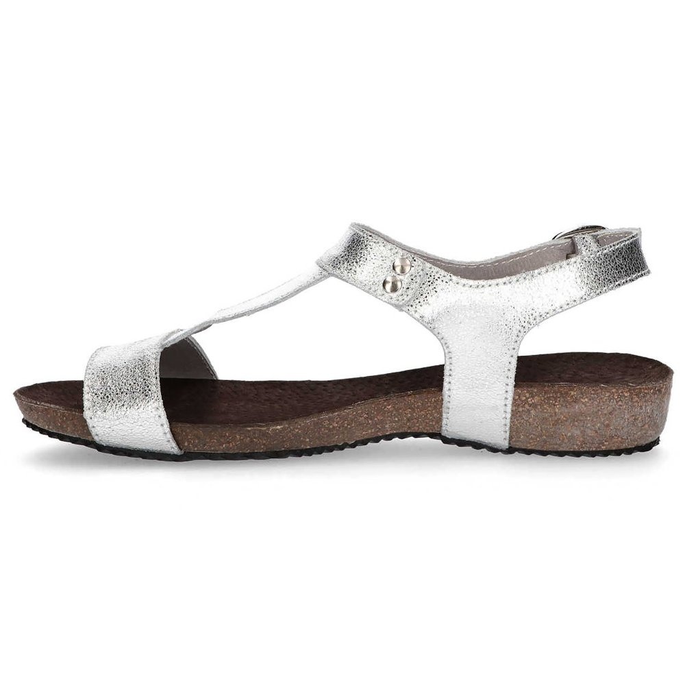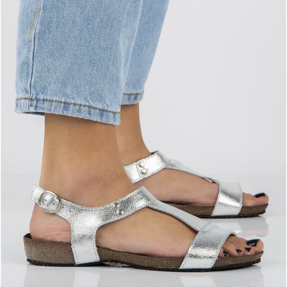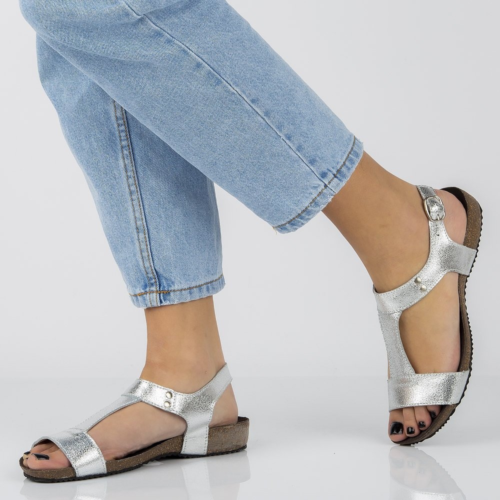 Aceste sandale clasice sunt o alegere excelentă pentru zilele de vară, datorită tocului plat de 2 cm și platformei de 1 cm. Forma migdalată a degetului de la picior adaugă subtilitate, iar talpa maro se potrivește perfect cu nuanța elegantă argintie a căptușei. Închiderea cu cataramă permite o ajustare ușoară a piciorului, ceea ce mărește cu siguranță confortul de utilizare.