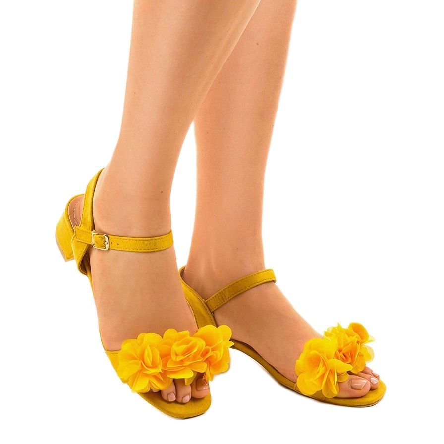 Detalii: Sandale galbene cu toc înalt, cu flori X8903