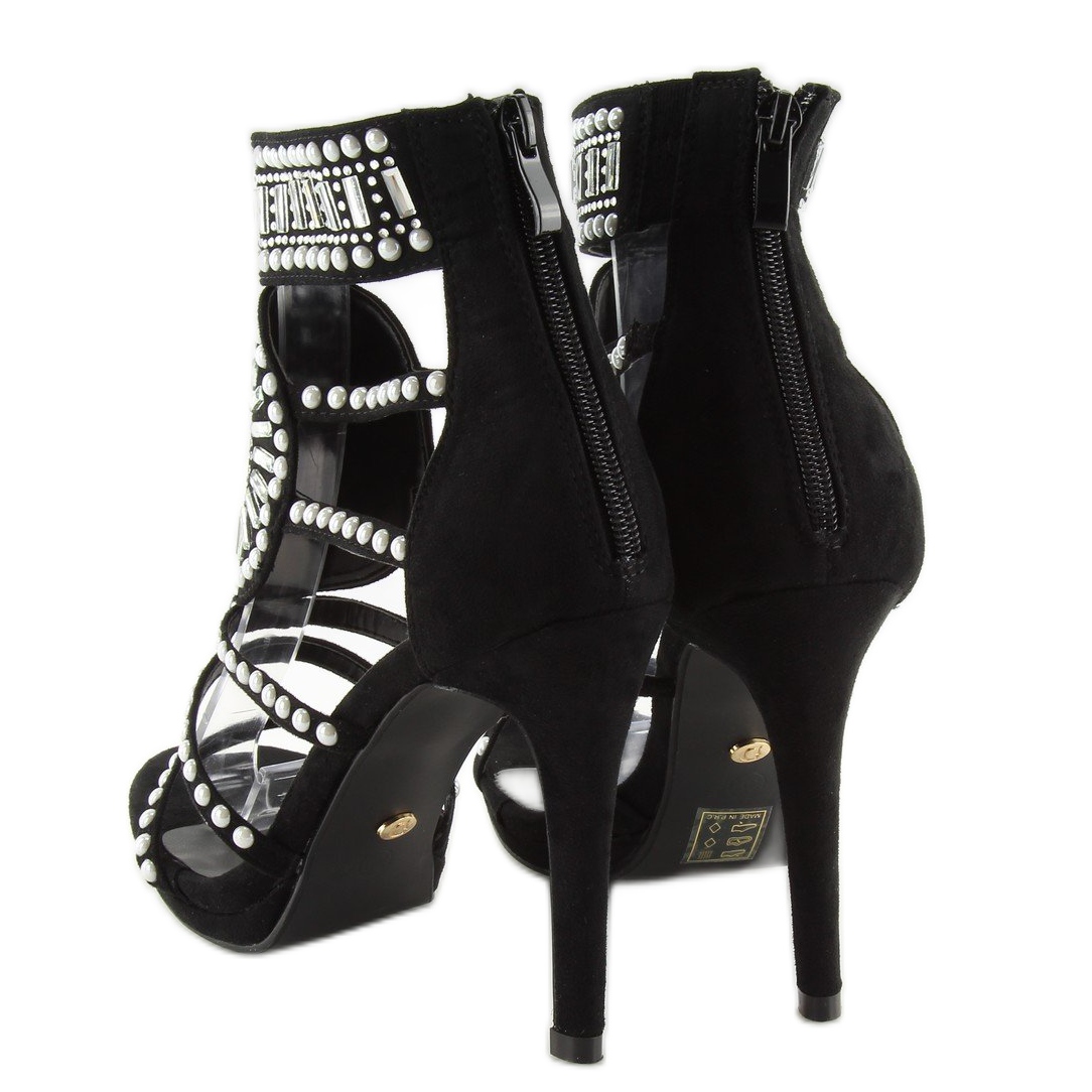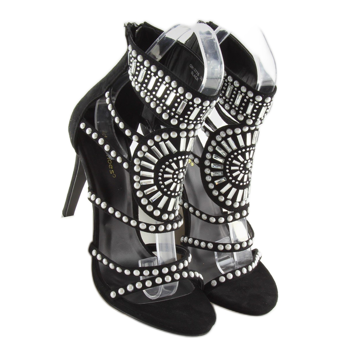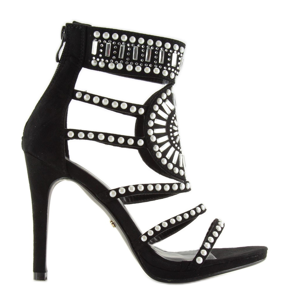 Descoperă extraordinarele sandale gladiator negre GH-2776 black - alegerea perfectă pentru femeile care doresc să îmbine moda cu confortul. Aceste sandale elegante cu toc inalt de 11 cm si platforma de 2 cm impresioneaza nu numai prin design, ci si prin atentia acordata detaliilor. Decorațiuni frumoase sub formă de margele și pietre de diferite forme le conferă un caracter unic, făcând fiecare stil unic.
