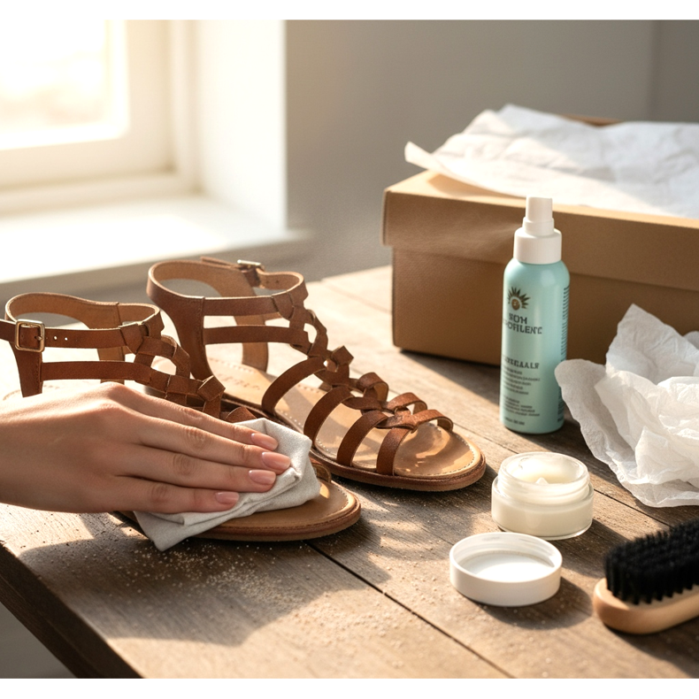 Sandalele purtate vara sunt expuse unui contact mult mai intens cu factori externi decât cizmele de iarnă - transpirație, apă, nisip, protecție solară. Îngrijirea regulată este cheia pentru ca pantofii gladiatori să arate frumos toată vara și pentru multe sezoane viitoare.