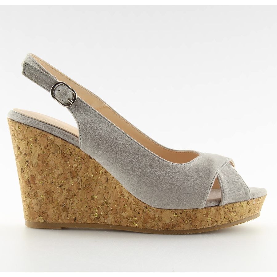 Detalii: Sandale gri pe toc de plută 6421 Gri