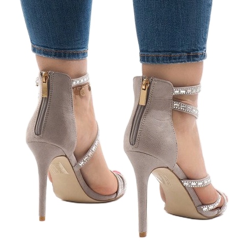 Detalii: Sandale gri pe toc înalt 9081-9 bej