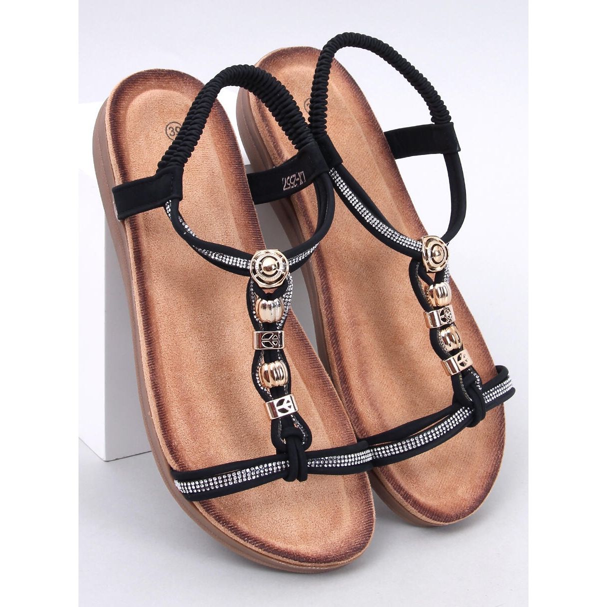 Inna marka Sandale Isabey negre decorate cu zirconiu cubic negru