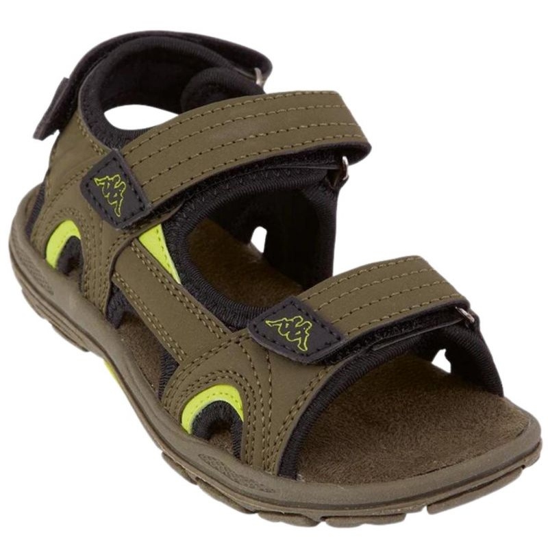 Kappa Early II K 260373K 3133 sandale - sandale verzi pentru băieți care vor lucra în timpul jocurilor de vară și a activităților zilnice. Designul modern în verde cu accente galbene combină un personaj sportiv cu confortul utilizării.