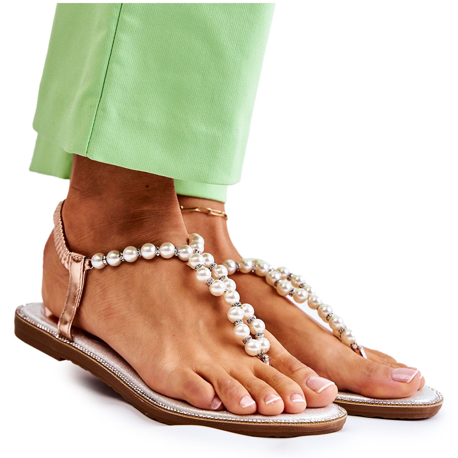 Detalii: PG1 Sandale La Moda Flip Flops Cu Perle Rose Gold Isalia roz de aur