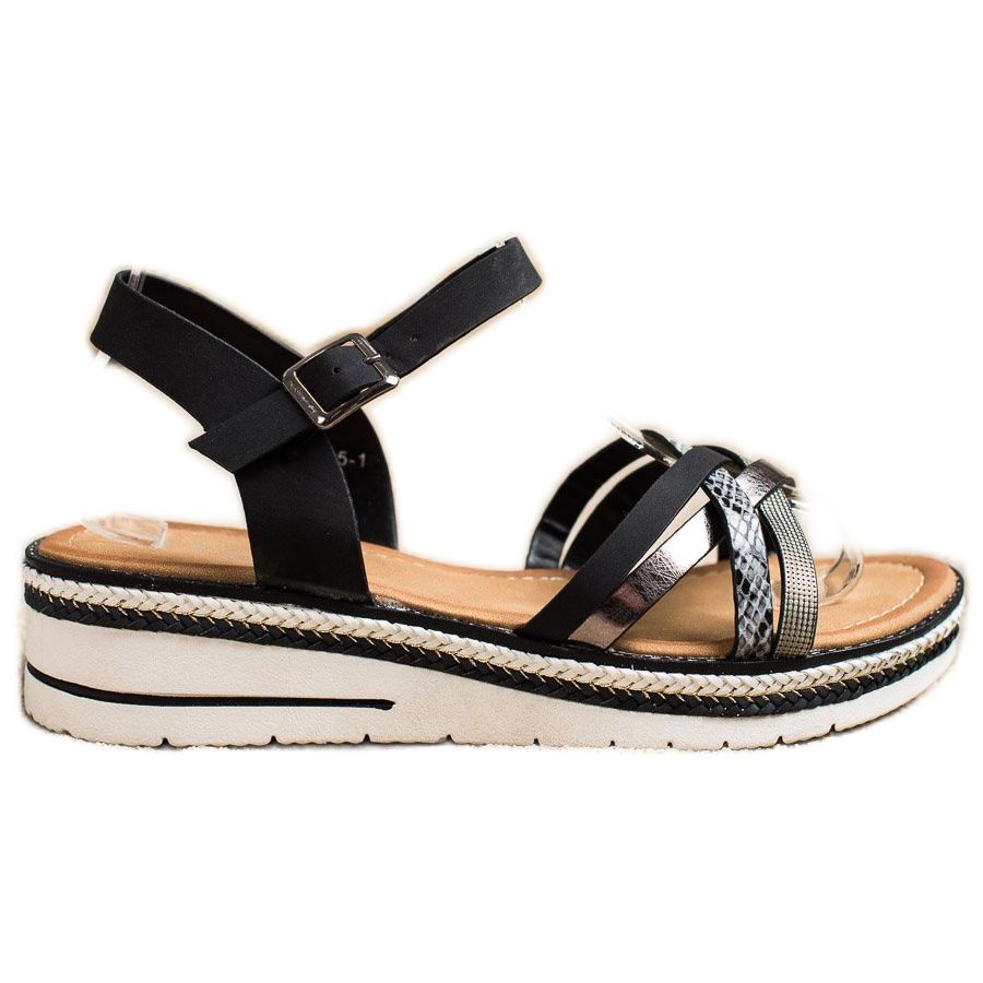 Detalii: Groto Gogo Sandale la modă pe o pană joasă negru gri