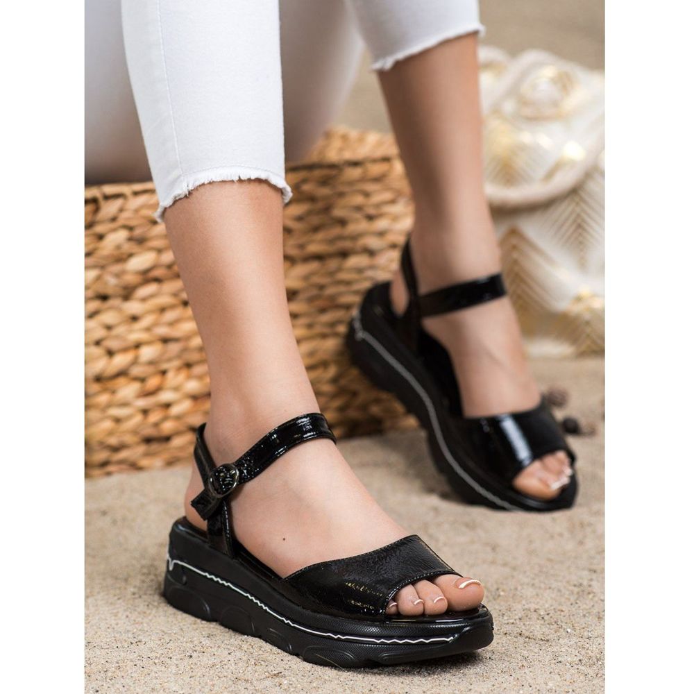 Sandalele Filippo Lacquered Platform in negru sunt o alegere perfecta pentru femeile care cauta pantofi eleganti si in acelasi timp confortabili pentru primavara si vara. Realizate din materiale de înaltă calitate, aceste sandale combină designul modern cu un stil casual, ceea ce le face complementul perfect pentru orice stil de zi cu zi.